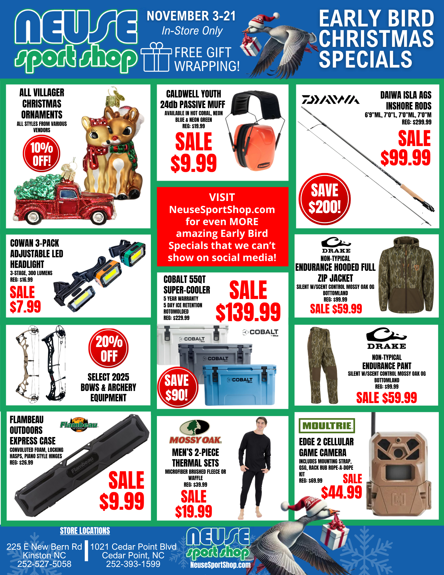 Neuse Sport Shop 2025 Early Bird Christmas Specials (NON-Firearms Edition) BACK